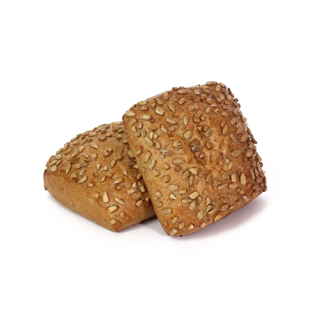 Aż 45% składu tej bułki stanowią ziarna słonecznika, co czyni ją wyjątkowo bogatym źródłem białka, błonnika i tłuszczów roślinnych, w tym nienasyconych kwasów tłuszczowych. Dodatek siemienia lnianego wzmacnia jej wartości odżywcze, a orzechowy posmak nasion sprawia, że jest to pieczywo, które świetnie pasuje zarówno do wytrawnych, jak i słodkich dodatków. To propozycja dla osób chcących w prosty sposób wzbogacić codzienną dietę o zdrowe tłuszcze pochodzenia roślinnego.