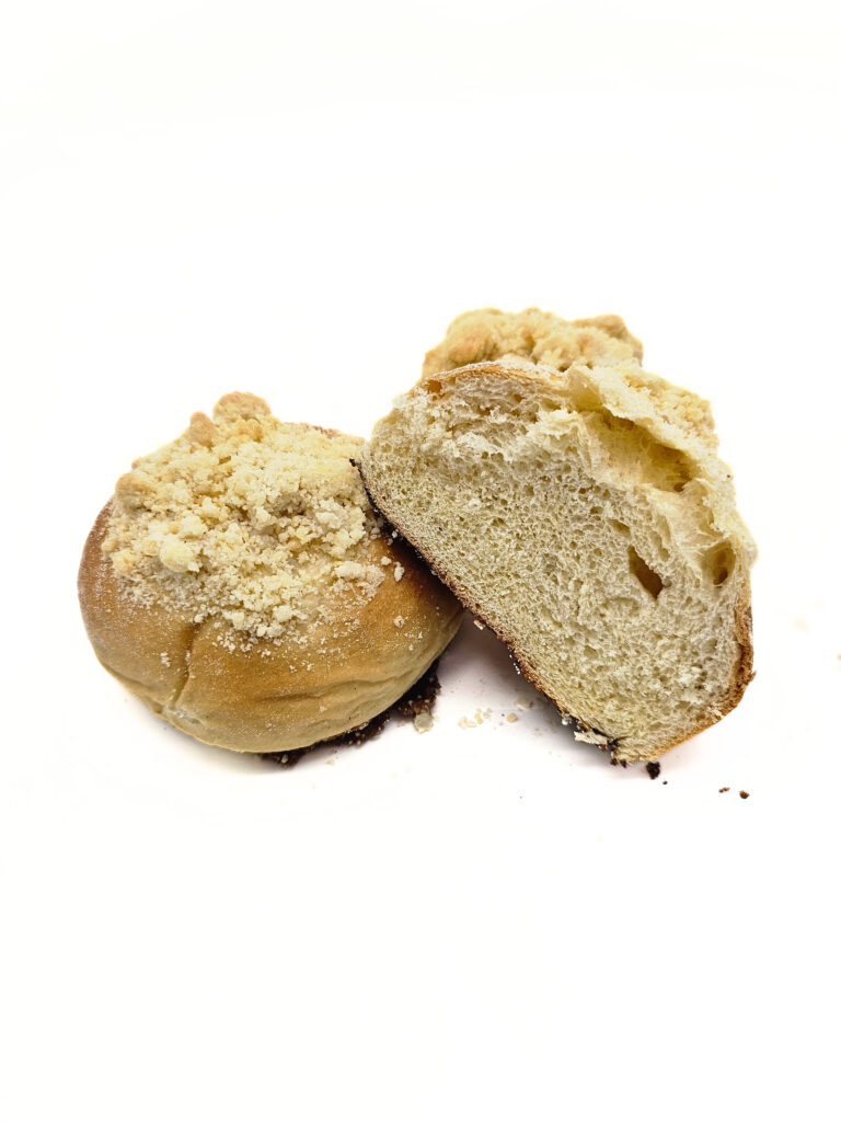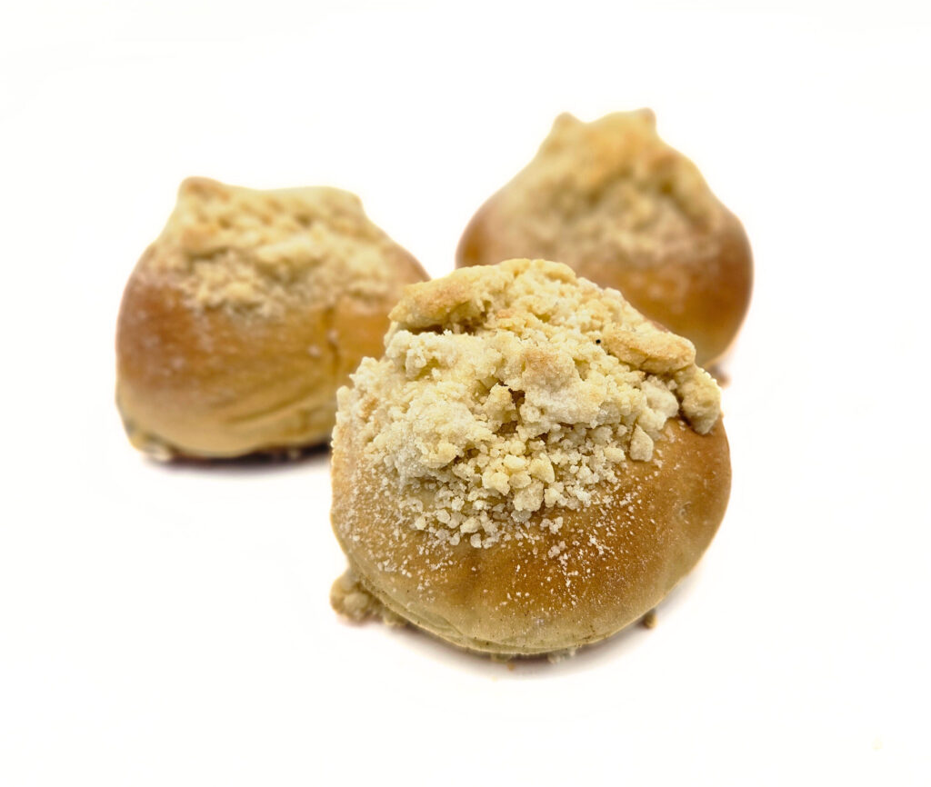 Delikatne pszenne ciasto wzbogacone aromatycznym cynamonem i posypane chrupiącą kruszonką. Słodka, puszysta i idealna na małą przyjemność w ciągu dnia.