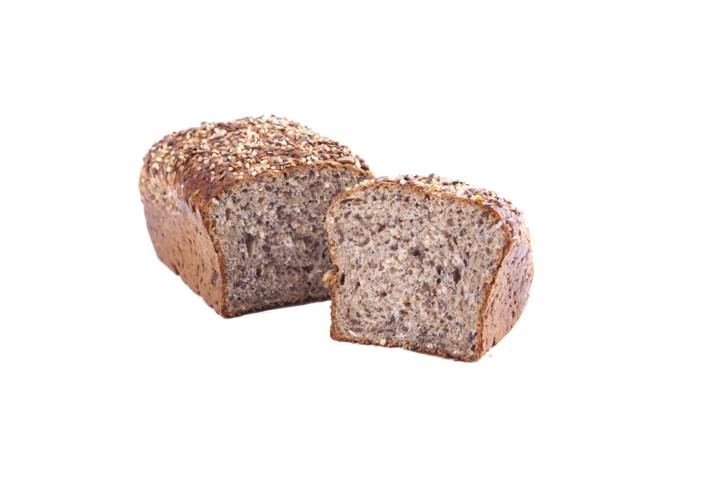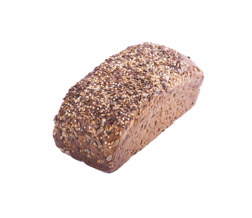 Naturalny chleb z mąki żytniej i pszennej graham, pieczony na zakwasie żytnim, wzbogacony płatkami owsianymi, siemieniem lnianym, ziarnami słonecznika, nasionami sezamu i pestkami dyni. Pełen smaku, chrupiący i bogaty w wartości odżywcze – idealny na zdrowe śniadania i kanapki.