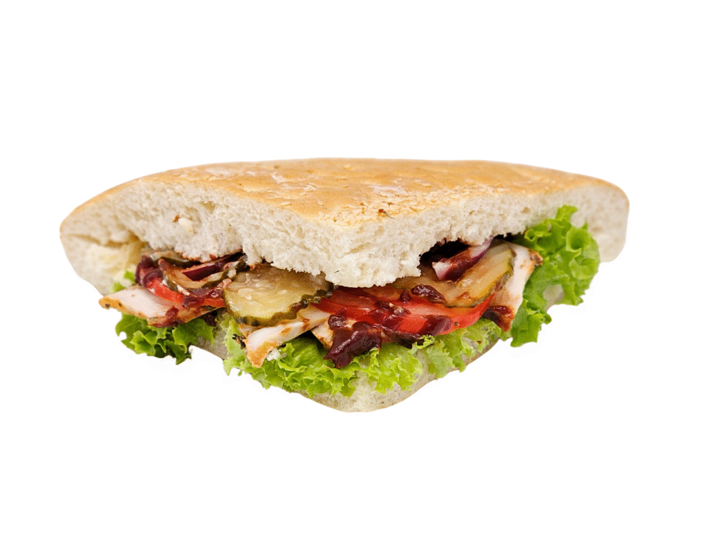Intensywny smak, który rozpala apetyt! Kanapka BBQ to połączenie soczystego fileta gyros z charakterystycznym, dymnym sosem BBQ. Świeża sałata, chrupiący ogórek konserwowy, soczysty pomidor i czerwona cebula nadają jej lekkości i balansu, a delikatny majonez podkreśla całość. To kanapka, która łączy w sobie klasykę i pikantny charakter – idealna dla fanów wyrazistych smaków.