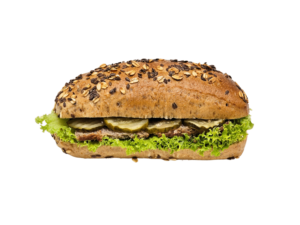 Klasyka w najlepszym wydaniu! Kanapka z Pasztetem to połączenie domowego, aromatycznego pasztetu z chrupiącą bułką graham, delikatnym serkiem i świeżymi dodatkami. Ogórek konserwowy i sałata nadają jej lekkości, a całość tworzy smak, do którego chce się wracać. Idealna zarówno na szybkie śniadanie, jak i sycącą przekąskę w ciągu dnia.