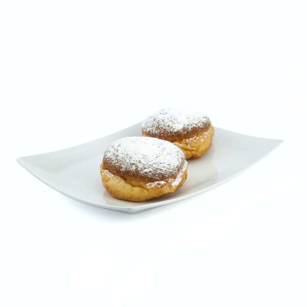 Puszysty drożdżowy pączek, delikatnie posypany warstwą cukru pudru. Klasyczna słodycz w najprostszej, a zarazem najbardziej uwielbianej formie.