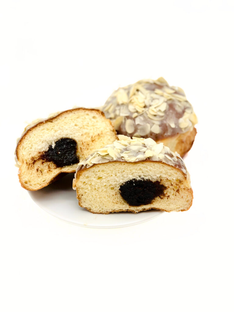 Puszysty drożdżowy pączek wypełniony aromatycznymi powidłami śliwkowymi, delikatnie obtoczony chrupiącymi płatkami migdałów. Wyjątkowe połączenie tradycji i elegancji w jednej słodkiej formie.