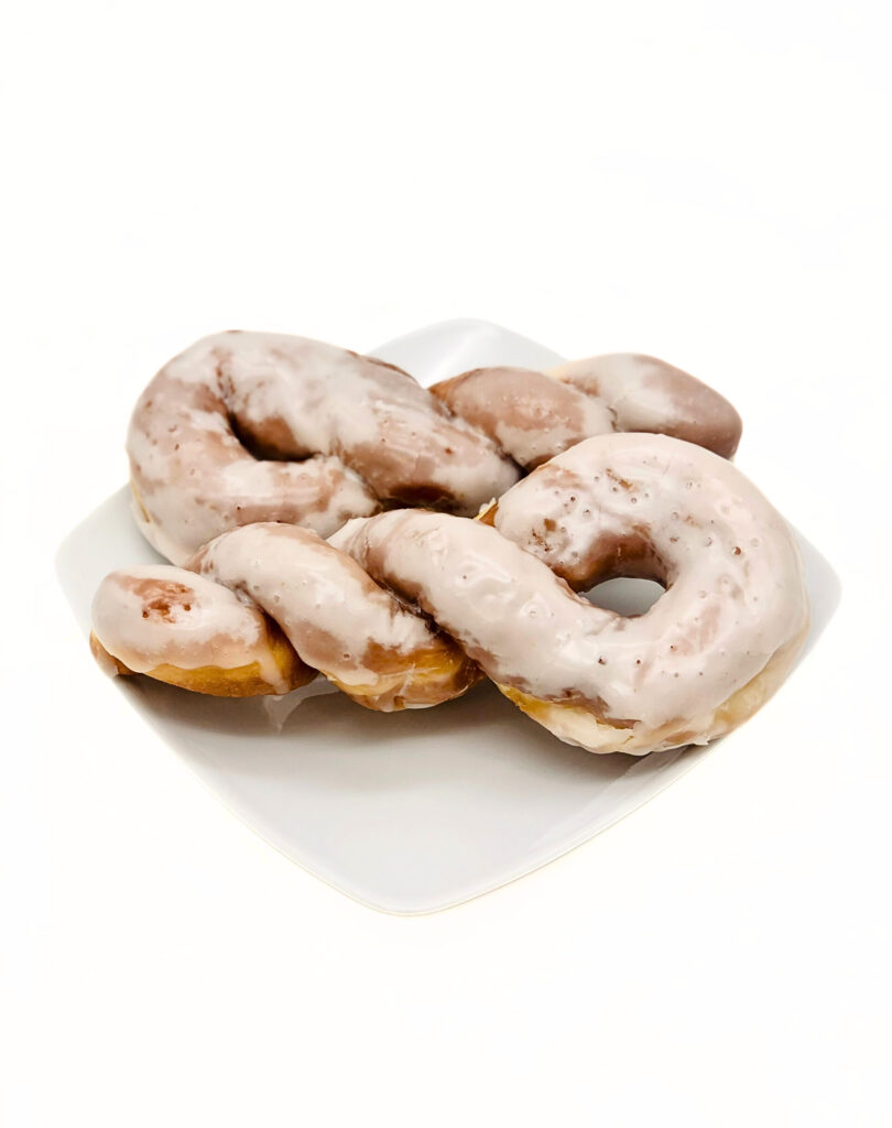 Tradycyjny drożdżowy pączek w formie efektownego warkocza, bez nadzienia. Puszysty, lekki i delikatnie słodki – idealny do kawy, herbaty lub jako klasyczna słodka przekąska.