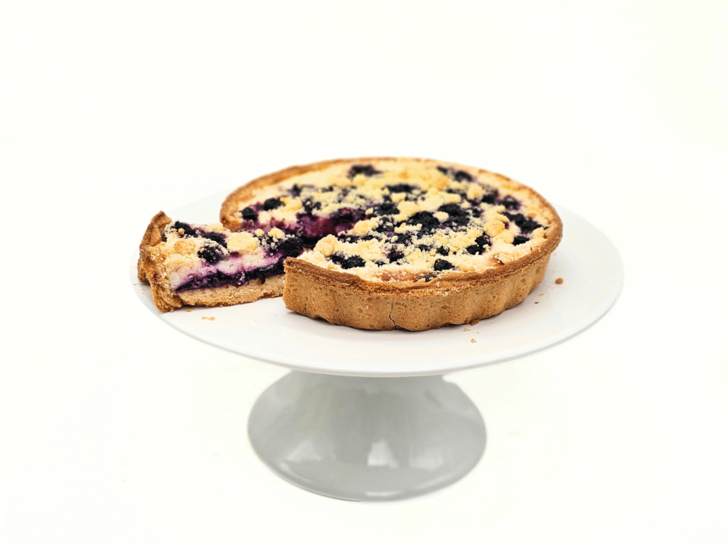 Wyjątkowe połączenie kruchego, maślanego spodu, aksamitnej masy serowej i soczystych jagód, ukrytych pod złocistą, chrupiącą kruszonką. Deser pełen smaku, lekkości i owocowej świeżości.