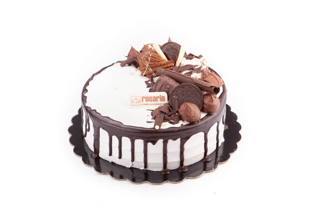 Tort firmowy z dekoracją czekoladową